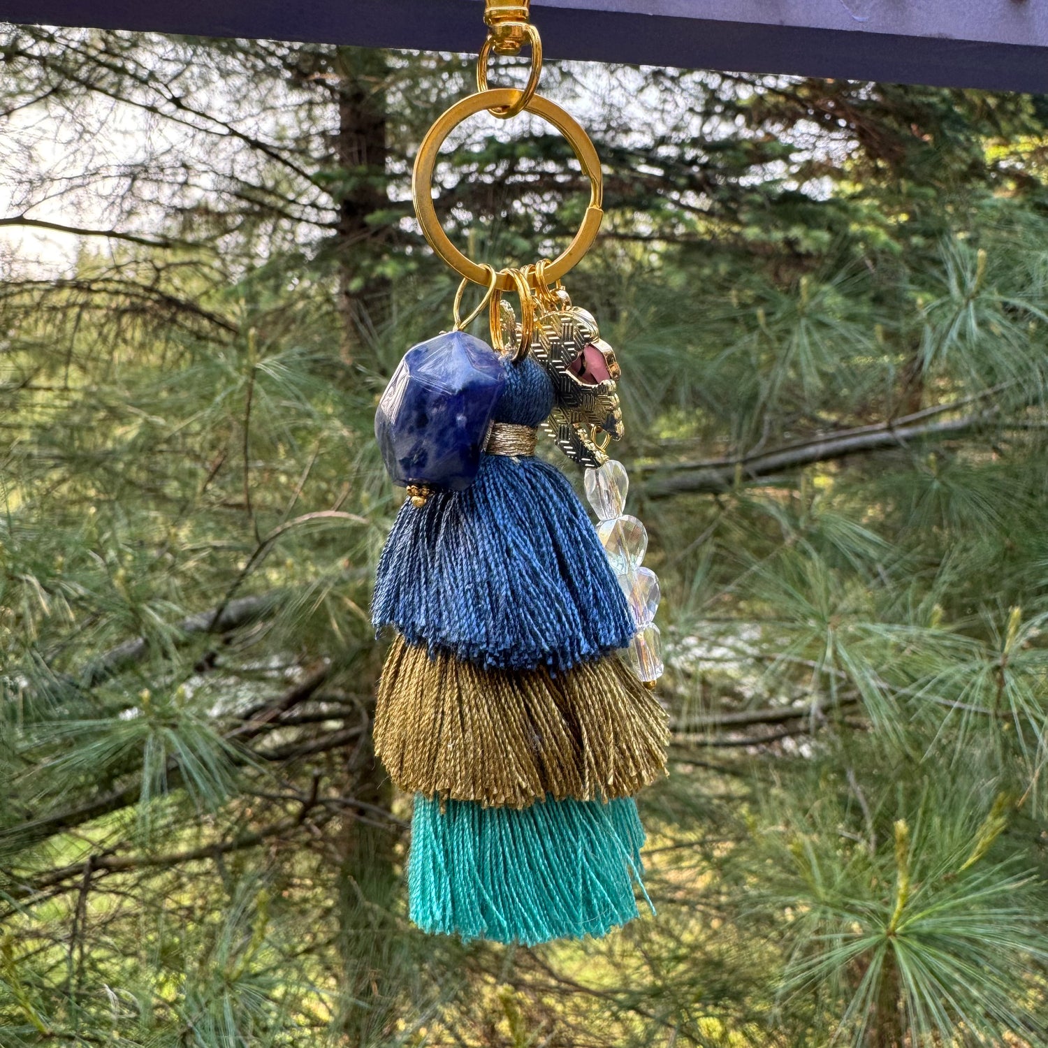 Get confidence from a chunk of blue Sodalite crystal, with a side of whimsy. Chakra stone blue Sodalite works to amplify communication and self expression. Clip this handmade accessory to a bag, backpack, yoga bag, diaper bag, and more. Highly giftable- charm ships complete with a canvas bag, metaphysical crystal card and an optional hand written note.